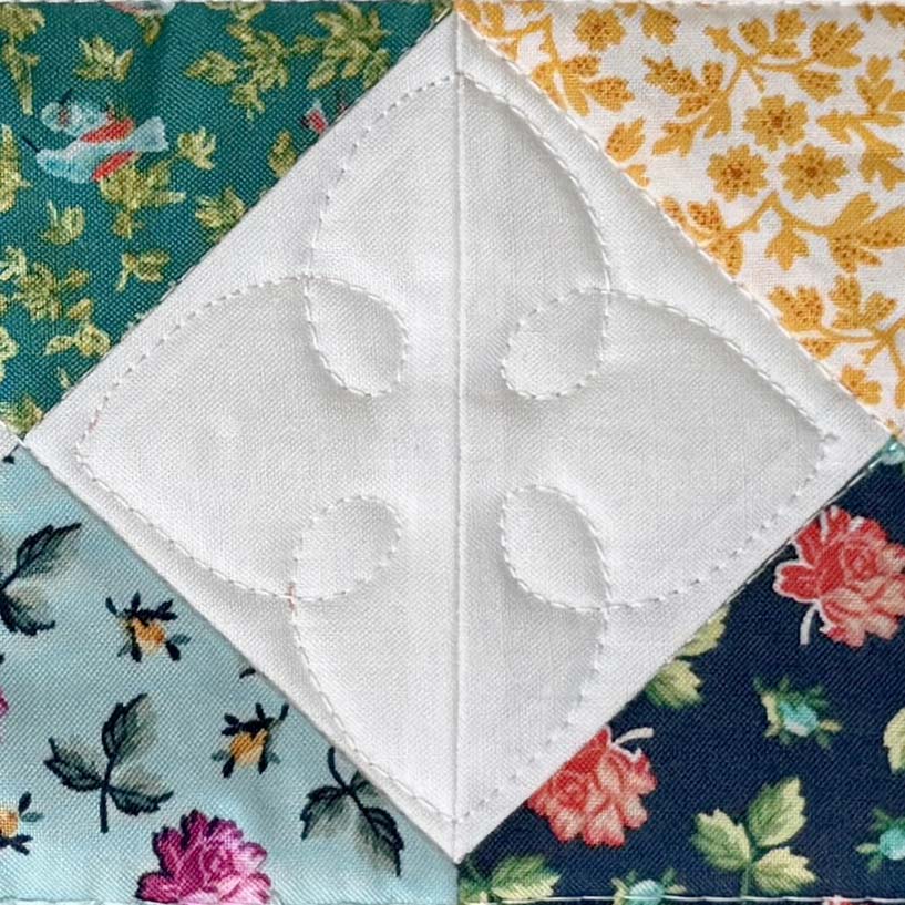 This type of quilting is meant to be almost invisible. The stitches lay in the seam and it requires a steady hand; any wobbling will be noticeable.