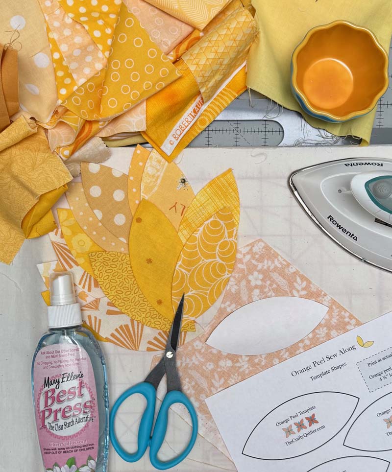 Last year, I hosted a quilt along showing several methods of applique. You can get all of the details including full tutorials to make an orange peel quilt here. And you can still sign up to do the quilt along at your own pace!