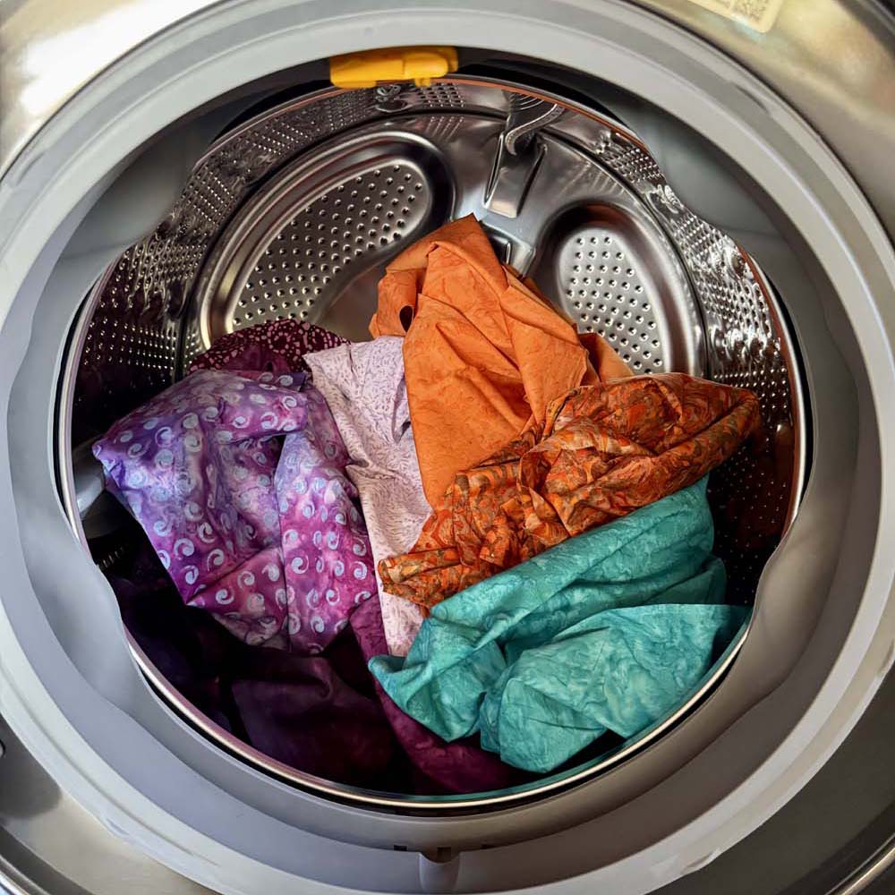 This is one of the most common questions quilters ask! I’m not a prewasher, in general; but now that I’ve started working with batiks again, I find it a smart investment of my time to wash them before working them into a quilt.