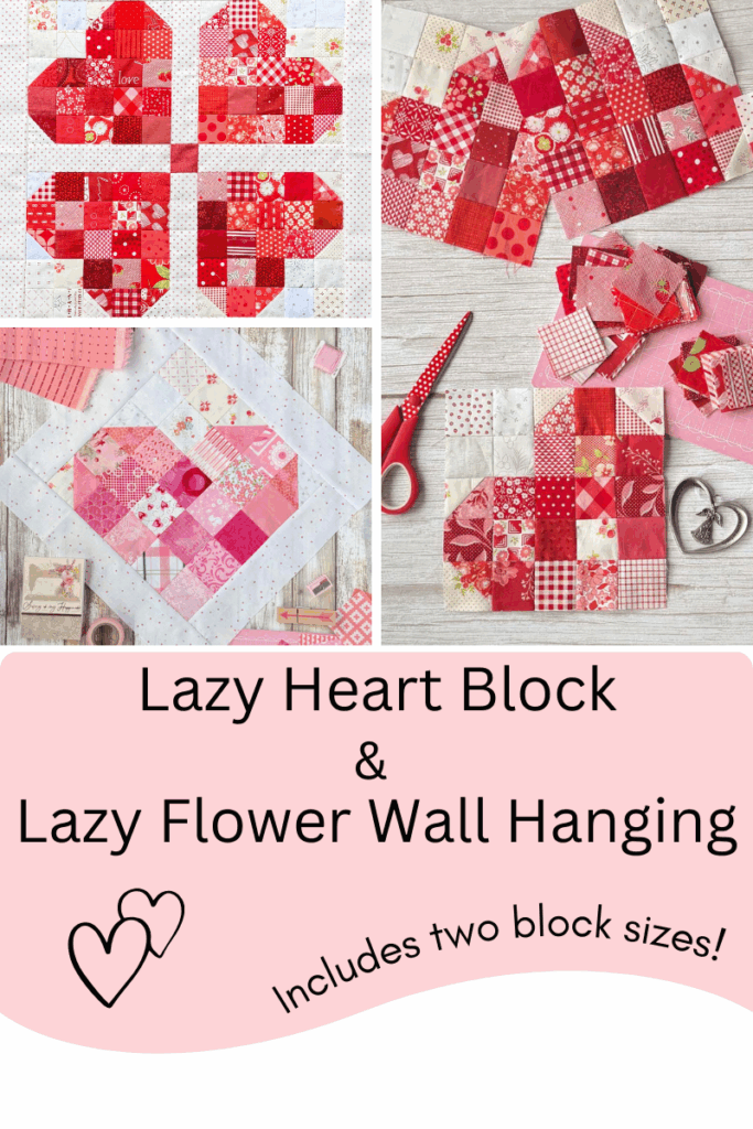 Take your heart blocks to the next level with my new Lazy Heart Block & Lazy Flower Wall Hanging pattern. The wall hanging measures 20″ square, and it would also make a great pillow cover. The piecing is simple and it’s the perfect weekend project.